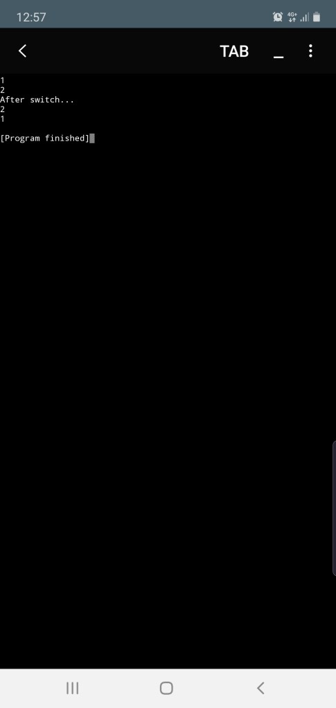 b = a-b; //this becomes b = a+b-b = 3-2 = 1