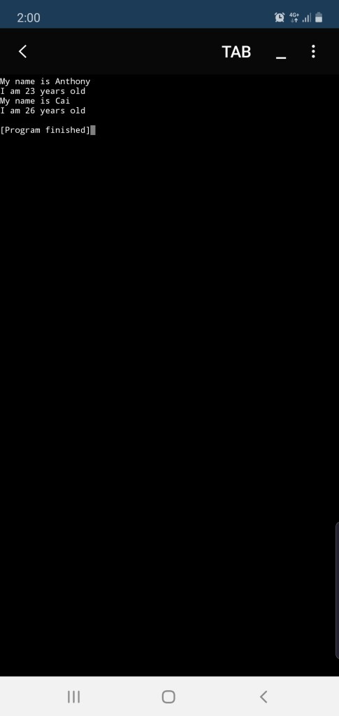 selfIntro('Cai' , 26)