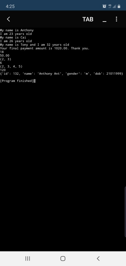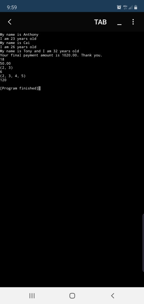 print ('My name is Anthony')