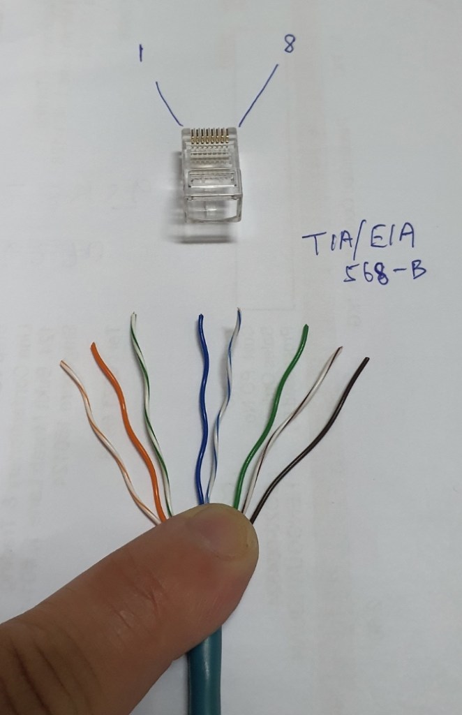 From the above pic, EIA 568B wire connection to RJ45 is: