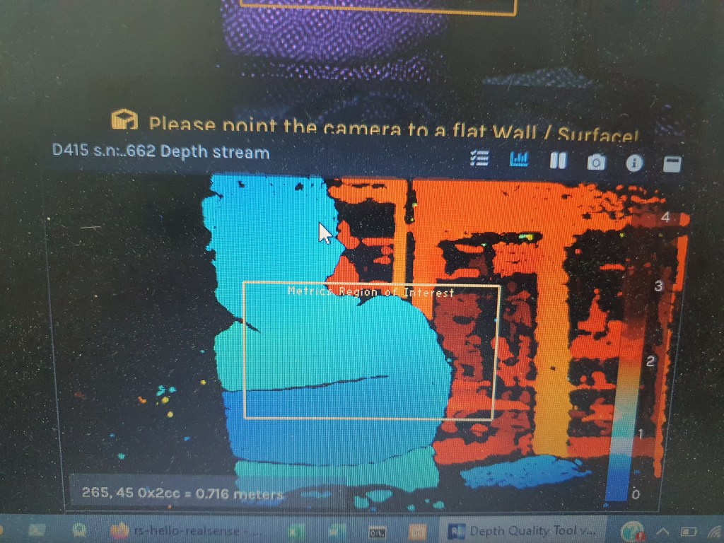 Below 3 pics shows the Z axis (distance) measurement capability of the D415. You have to zoom in to see the reading(distant reading pointed by the arrow).