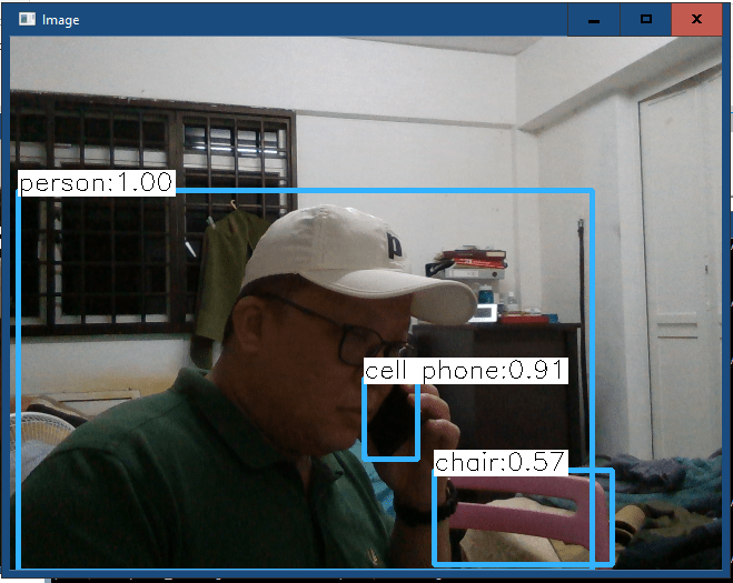 Below is the video screenshot of the objects identified and their probabilty.