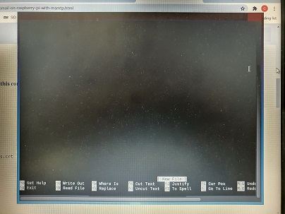 Key the following setting into the screen, then press Ctrl X , follow by ‘Y’ when ask whether to save settings. ‘ username@gmail.com ‘ is your ‘From’ email and ‘ thepassword ‘ is your email pw.