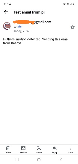Ok, now we shall use the ‘Raspi Camera with motion detection’ project together with sending email via Raspi. Previously we sent the email via terminal, now we wrote a python function inside the ‘motion detection and recording’ script. So when motion is detected, the Raspi cam will record a 5 sec video and also send an email alert to my email. See below: