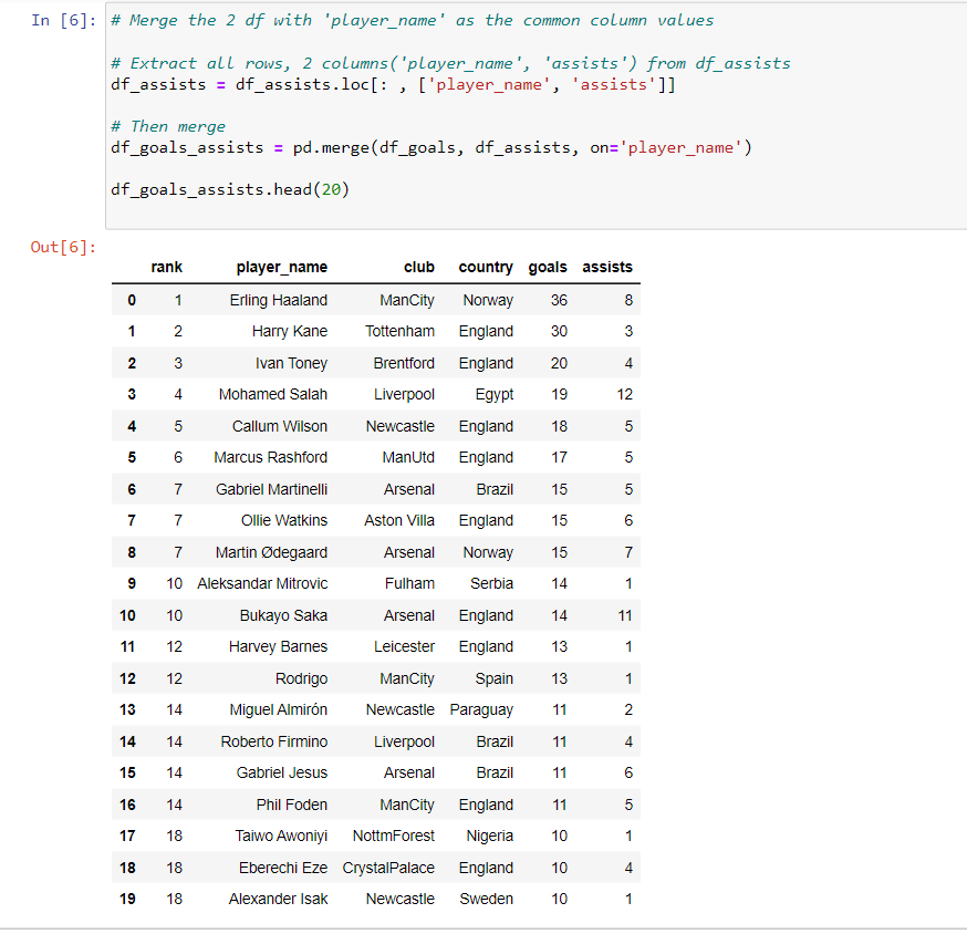 This post is about combining and visualization of 2 EPL datasets, process includes dataframe slicing, merging and plotting. The 2 datasets can be downloaded below: